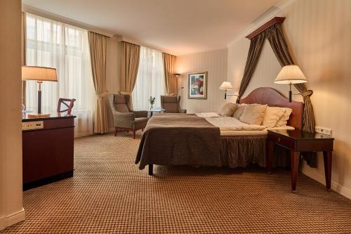 De rymliga rummen på Elite Mollberg Hotel har bekväma sängar med extra stora kuddar. Minibar, skrivbord och platt-TV med kabelkanaler ingår också.
