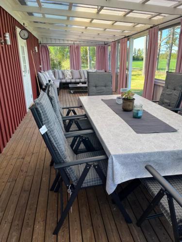 Situated in Säffle in the Värmland region, Värmlandsnäs Valdersrud Stenröse has a garden. This property offers access to a patio, free private parking and free WiFi. The property is non-smoking and is set 50 km from Åmål Railwaystation. The holiday home with a terrace and garden views features 2 bedrooms, a living room, a flat-screen TV, an equipped kitchen with an oven and a microwave, and 1 bathroom with a walk-in shower. For added convenience, the property can provide towels and linens for a supplement. The property has an outdoor dining area. Guests can take advantage of the warm weather with the property's barbecue facilities. The nearest airport is Karlstad Airport, 81 km from the holiday home.
