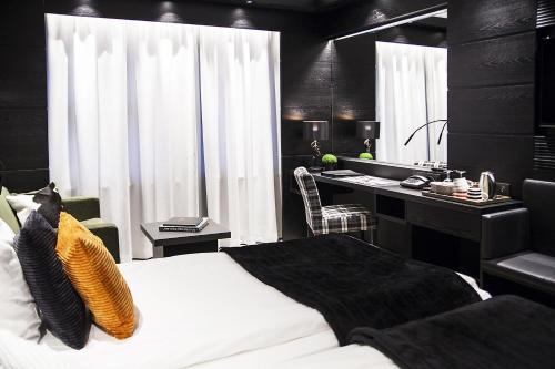 Detta ljusa tvåbäddsrum har minibar och en sittgrupp med soffa.